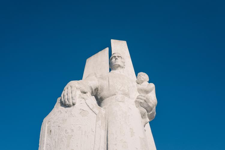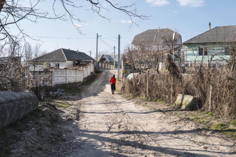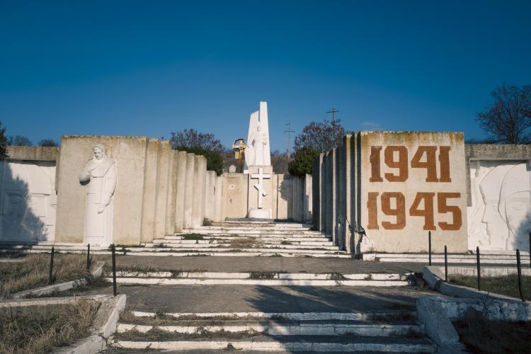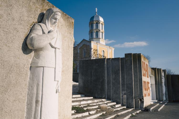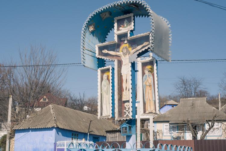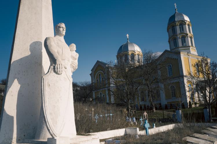 Là, paisible au bord du Nistru sur sa rive droite, se trouve Molovata, un village moldave avec ses maisons couleur verte et bleu et le sourire d’Ulia avec assise sur son banc où son chat vient la rejoindre. Et notre inconnu de dos habillé de rouge et noir passant son chemin, avec au bout du village ce magnifique Monument de l’ère soviétique à la gloire de soldats tombés lors de la guerre 1941 – 1945, à coté de l’église du village. Moldavie, Molovata. Le 10 mars 2024.