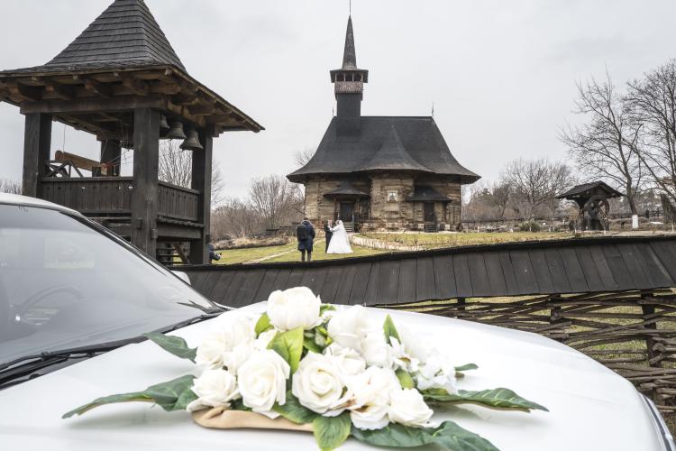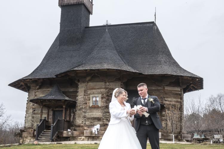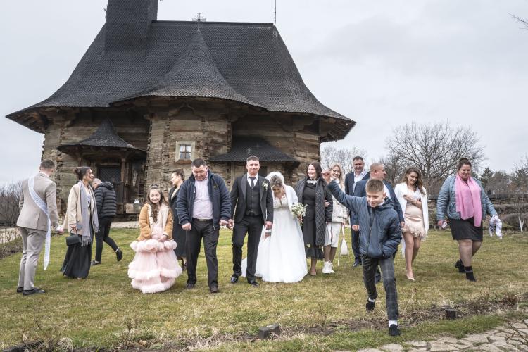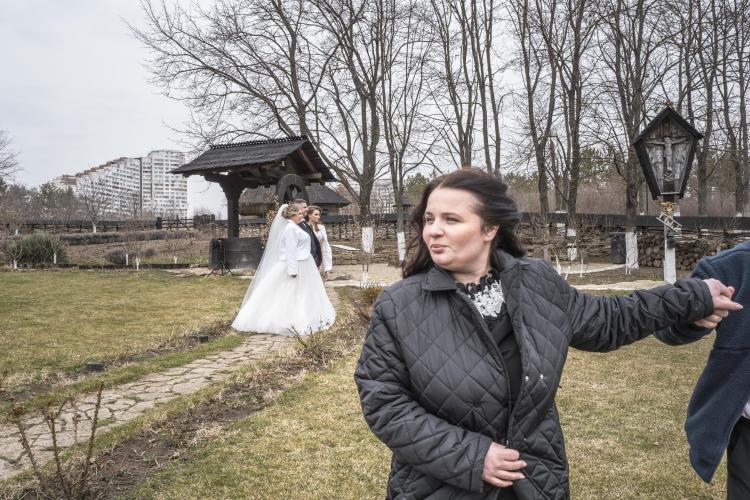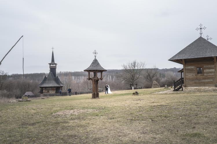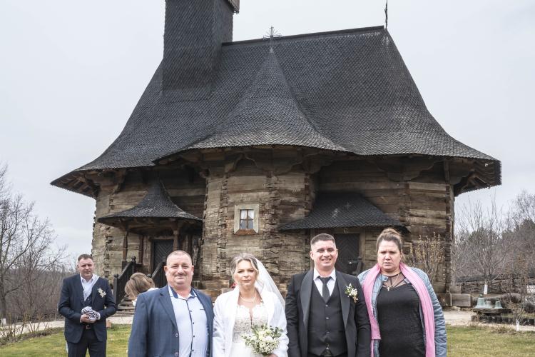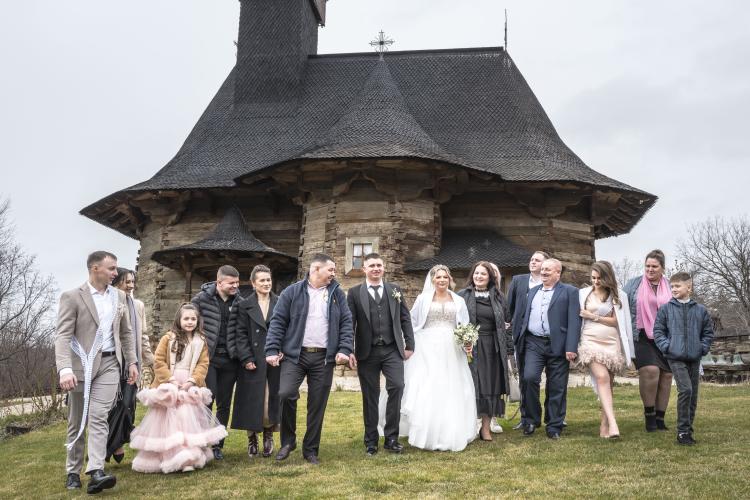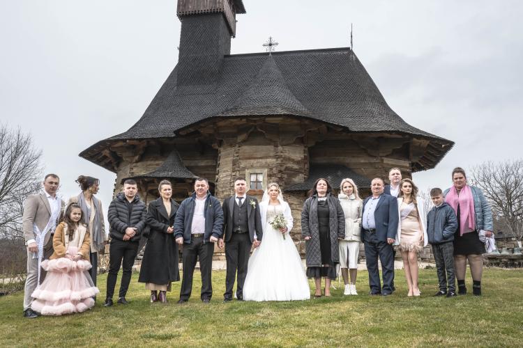 Photo de famille d un mariage Orthodoxe a l eglise. " Adormirea Maicii Domnului " , la plus grande eglise en bois du pays, a l entrée de la ville de Chisinau et la plus ancienne église en bois de Moldavie (1642), l église en bois de l Assomption de la Vierge Marie est un joyau religieux, en fonction. Construite dès le XVIIe siècle avec les chênes des forêts moldaves de Calarasi.