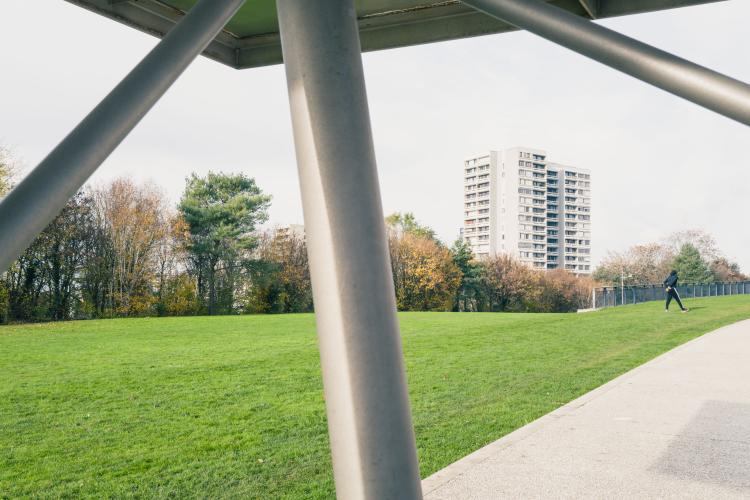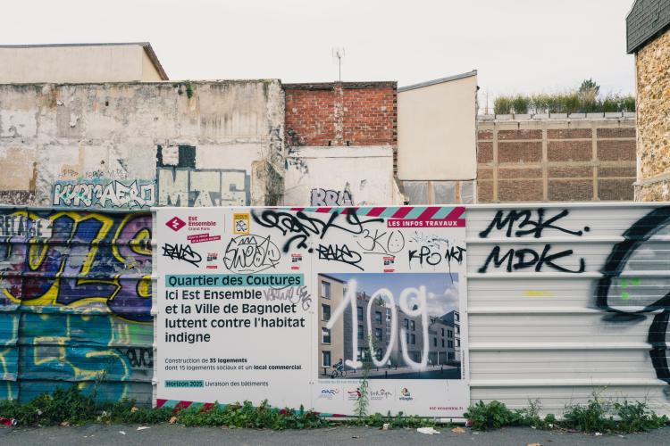 De Montreuil a Bagnolet, a travers les (favelas) a une des cites des Bagnolet, un parc les sépare, département de la Seine Saint Denis. Illustration de Paris, la ville, les monuments, les chantiers, les habitants, etc. France, Paris le 23 novembre 2023.