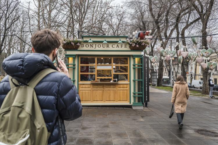 Capitale de la République de Moldavie en Europe de l'Est. Parmi des pâtés de maisons à l'architecture soviétique se trouvent de remarquables monuments tel la cathédrale néoclassique de la Nativité, surmontée d'un dôme elle se dresse au milieu de Central Parc qui longe l’avenue Pouchkine. Plus loin sur le Boulevard et à l’entrée du Parc qui portent son nom trône la statue en bronze de Stefan cel Mare Prince moldave (1457-1504) célèbre dans toute l’Europe pour sa résistance contre l’Empire Ottoman. Ici se trouvent aussi le Parlement de la République moldave, le Palais présidentiel, les vendeuses de tulipes, plus loin la Piata centrala où le marché propose ses atours, fruits, légumes, sucré, salé, vendeuses de fromages et leurs balances bleues… Son musée Brancusi sans ses œuvres, en face, désaffecté mais encore debout, se montre le fameux Hôtel National de l’époque soviétique, aux couleurs mondriannes, sur sa gauche l’Hôtel Cosmos, derrière les grandes allées de building avec leurs grandes enseignes, aux quartiers populaires, pause café à la Crème de la Crème, chantier sur la E584, les corbeaux à Central Parc et autres plaisir…