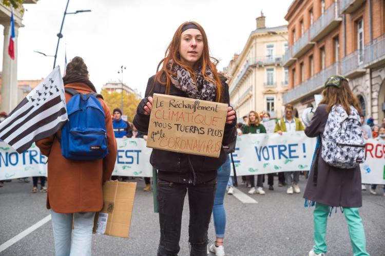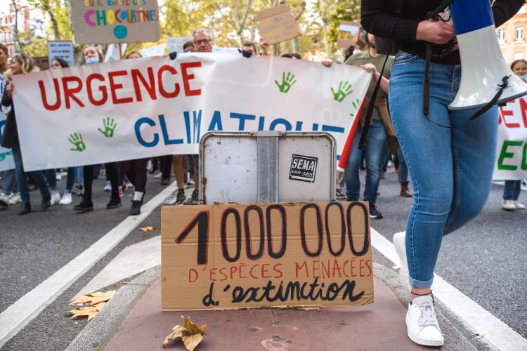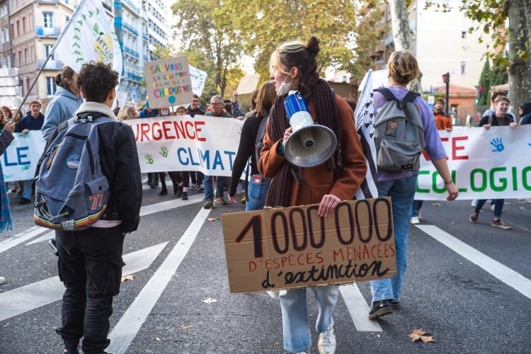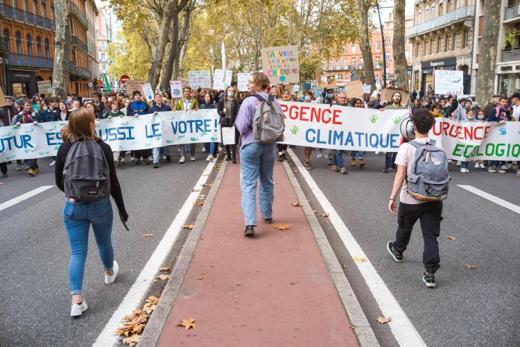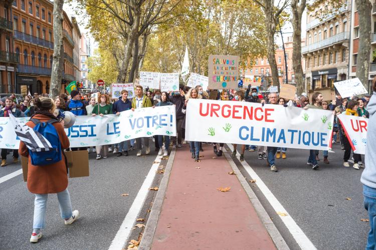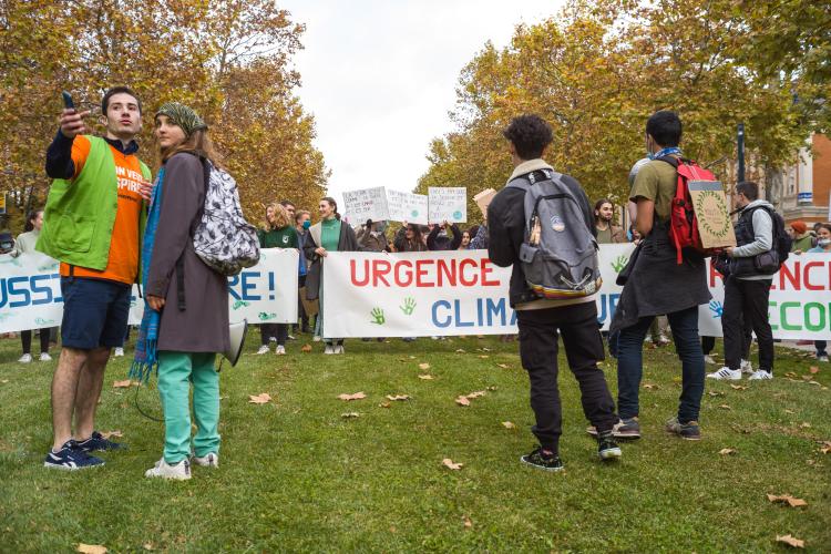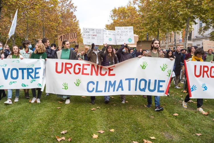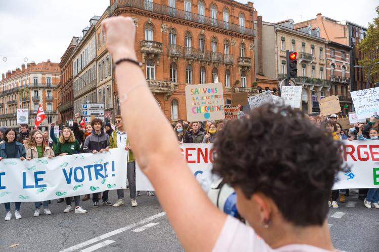 Journee mondiale d action, marche reunissant plusieurs collectifs dont Alternatiba, ANV-COP21, Greenpeace Toulouse, Youth For Climate, Extinction Rebellion, Axe Vert de la Ramee, FNE Midi-Pyrenees, CCFD Terre Solidaire Midi-Pyrenees, Collectif Anti OGM 31, Les Amis de la Terre, Stop TERRA 2. Le dereglement climatique, c est notre present a toutes et tous, partout dans le monde. Phenomene global, il appelle des reponses mondiales pour lutter ensemble. Six ans apres l accord de Paris, c est ce qui devrait guider les Etats a l occasion de la COP26 qui se deroulera a Glasgow du 31 octobre au 12 novembre afin de maintenir la hausse des temperatures en dessous de la barre des 2°C, voire 1,5°C. France, Toulouse, 2021-11-06